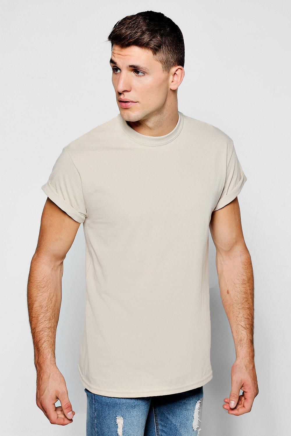 Crew Neck T Shirt With Rolled Sleeves Boohooman